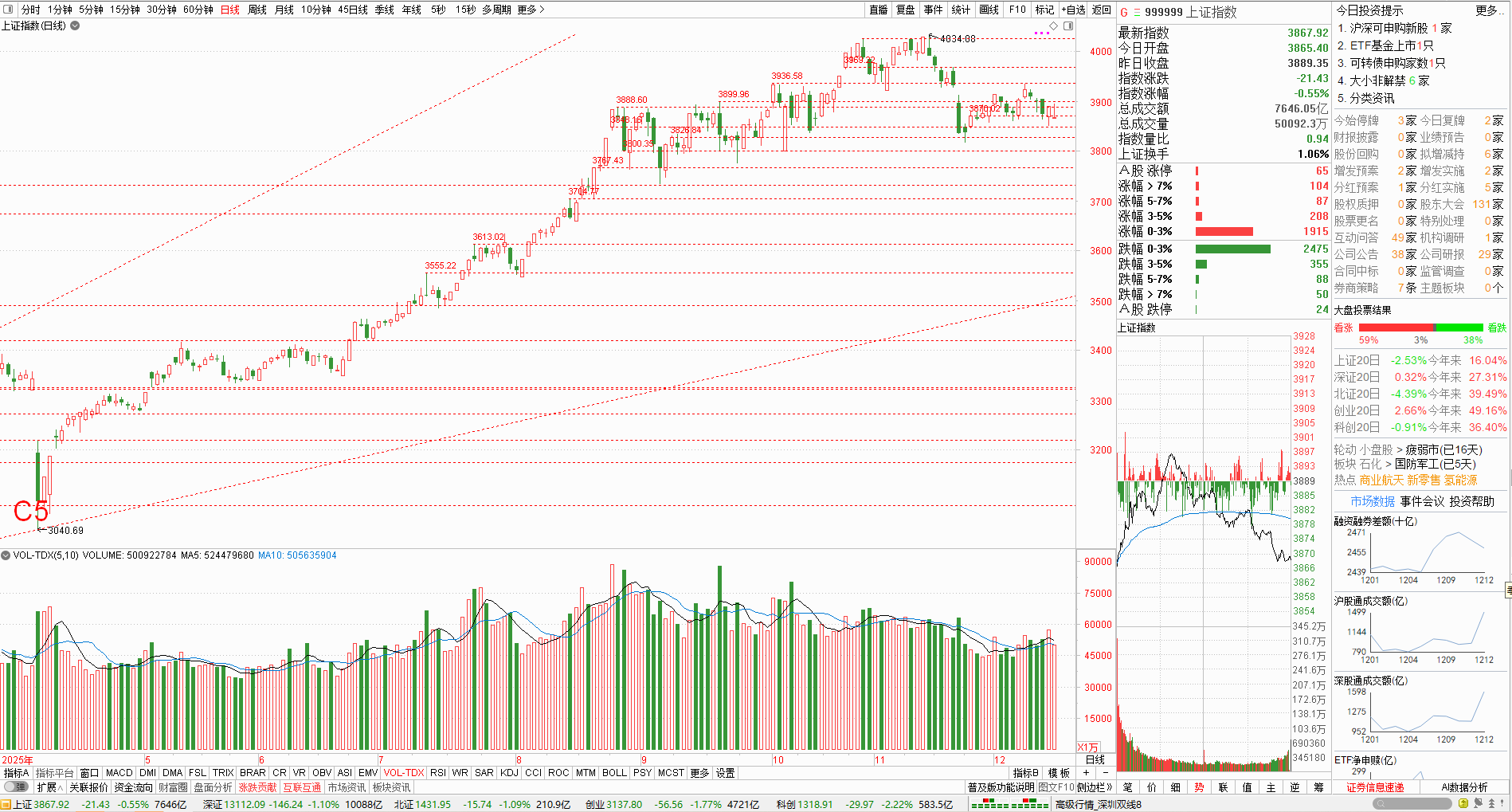 今天股市再次回踩震荡,到收盘时候止,上证跌了0.55%,深证跌了1.10%,北证跌了1.09%,创业跌了1.77%,科创板跌了2.22%。沪深北三市5455只个股,上涨2314只,涨停65只,下跌2968只,跌停23只。整体行情偏弱。