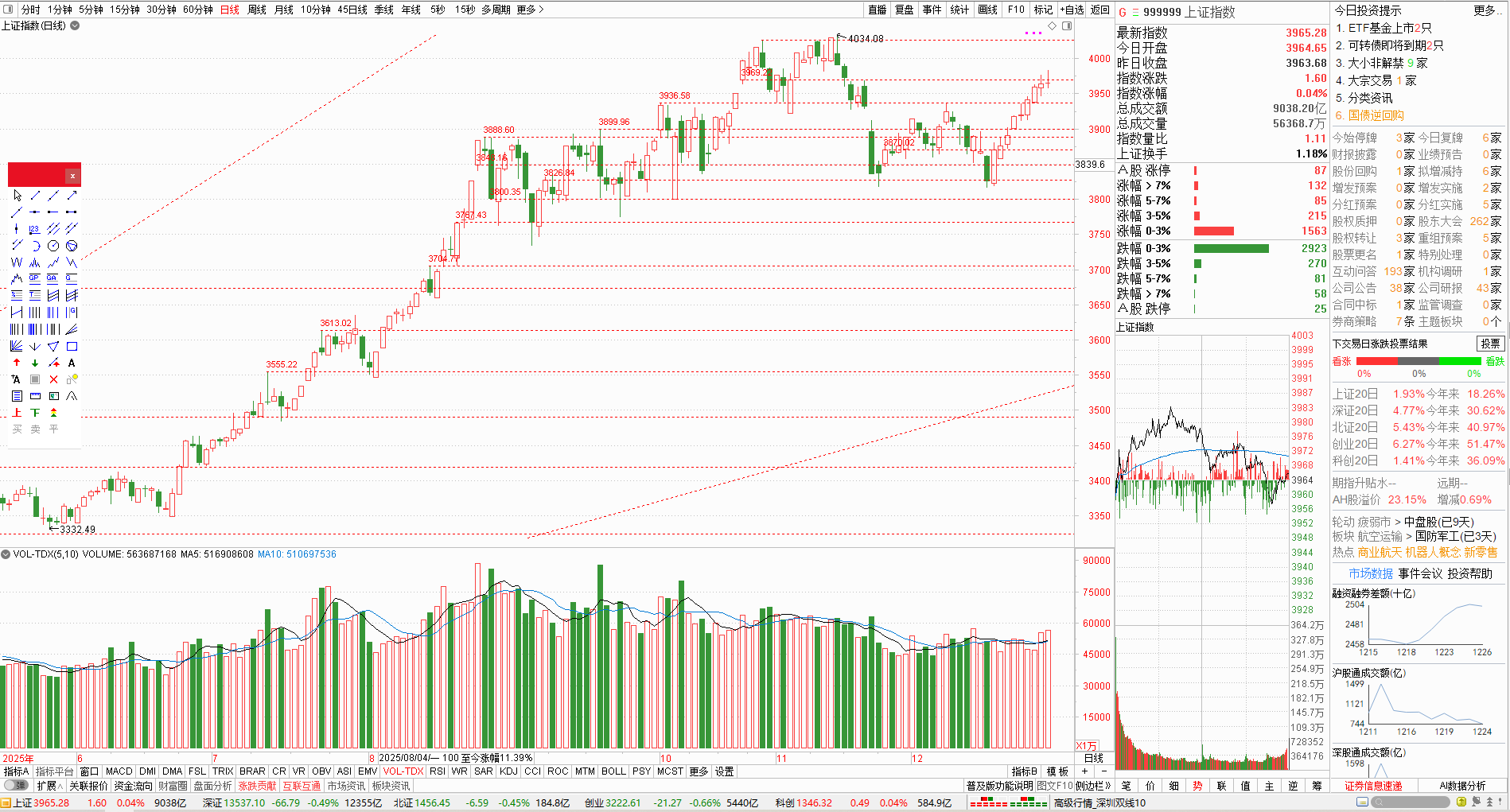 受利好消息刺激,今天股市直接高开高走,到收盘时候止,上证涨了1.38%,深证涨了2.24%,北证涨了1.80%,创业板涨了2.85%,科创板涨了4.40%。沪深北三市5468只个股,上涨4185只,涨停127只,下跌1168只,跌停12只。整体走势基本符合老兵帅克节前的预期。