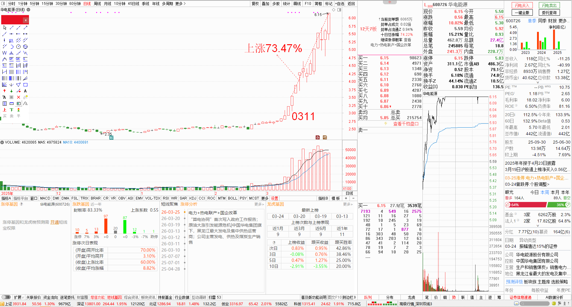 今天股市延续昨天的涨势,继续向上攻击,到收盘时候止,上证涨了1.30%,深证涨了1.95%,北证涨了1.48%,创业板涨了2.01%,科创板涨了1.91%。沪深北三市5492只股票,上涨4874只,涨停105只,下跌560只,跌停4只,继续维持强势的格局。