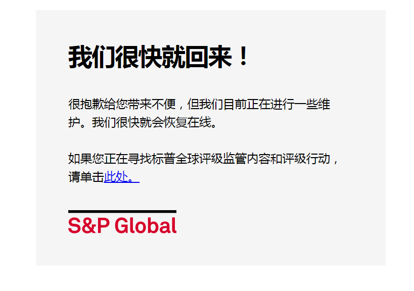而同时,标普道琼斯指数公司称,其网站当前无法访问,正在进行维护。