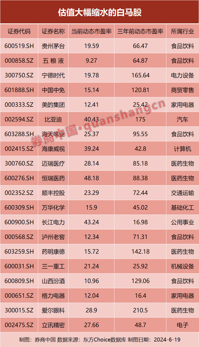 除了能源、电信等行业外,多数白马股估值相比2021年2月份缩水了近70%。