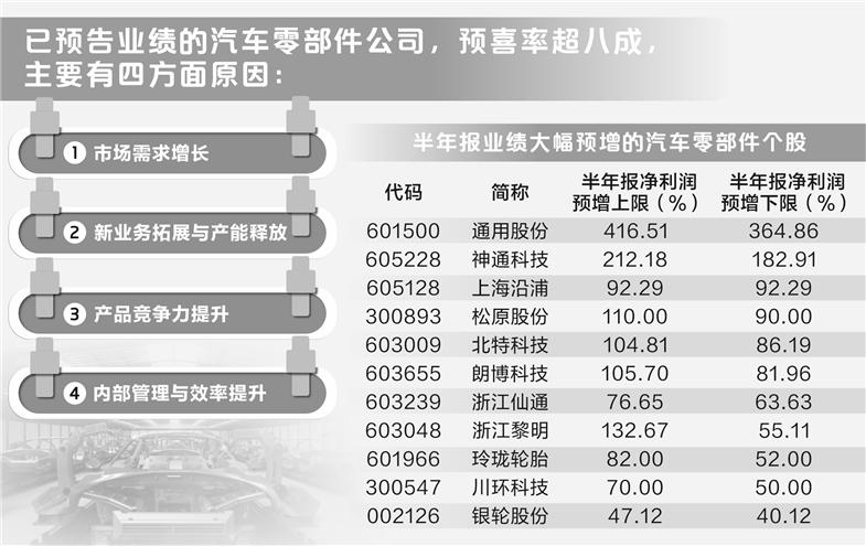 如,通用股份表示,受益于国内汽车行业产销增长、海外轮胎市场需求旺盛,公司加速全球营销网络布局和新业务开拓,加速优质产能释放,上半年轮胎产销量实现较大增长。