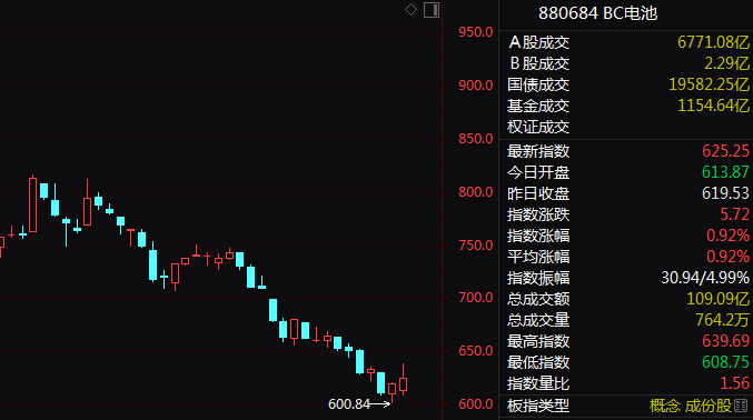 BC电池概念盘中也一度放量直线拉升,板块指数振幅高达近5%。鹿山新材开盘不到10分钟垂直涨停,宇邦新材触及20%涨停价,TCL中环、隆基绿能等盘中均异动上攻。