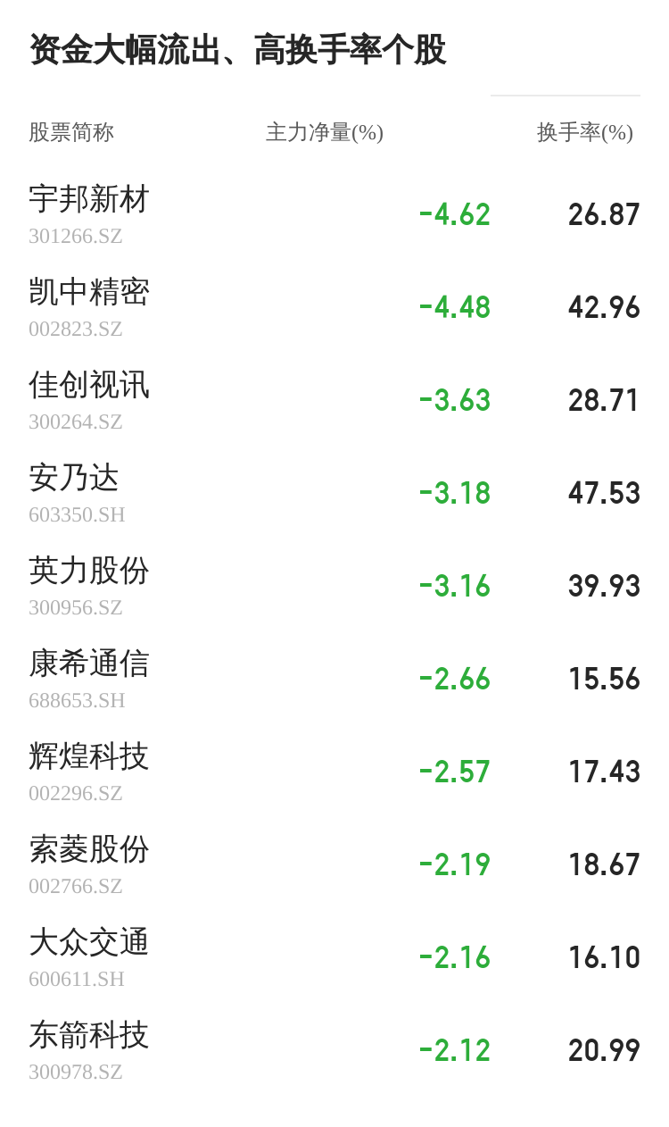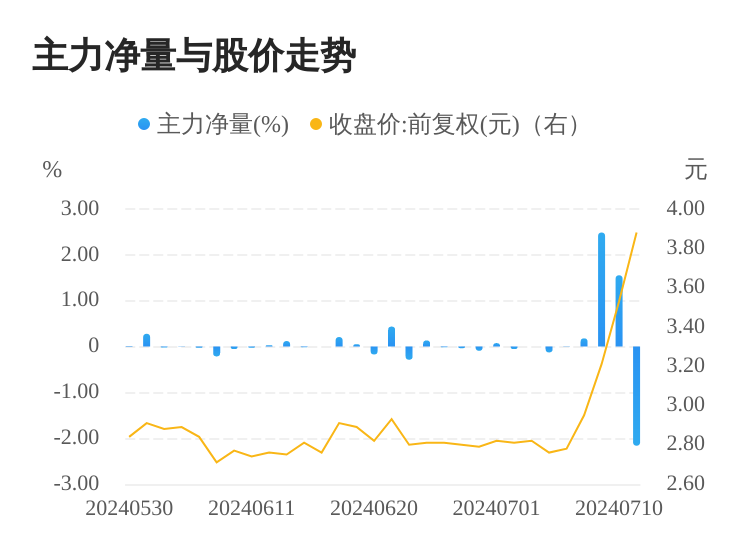 该股今日主力净量为负,且值较大,表明主力大幅流出,主动卖出明显多于主动买入。与此同时,今日换手率较高,主力抛售的嫌疑较大。投顾建议:投资者短期宜合理控制仓位,谨慎为佳。