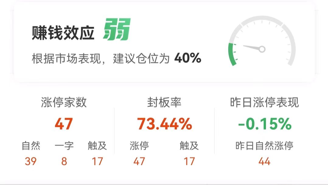 涨停个股数量方面,截至收盘,今日共计47股涨停,另有17只个股盘中一度触及涨停,封板率73.44%。