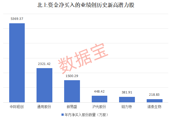 中际旭创、通用股份、新易盛3只业绩创历史新高的潜力股年内获北上资金大手笔买入。