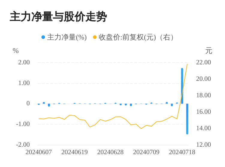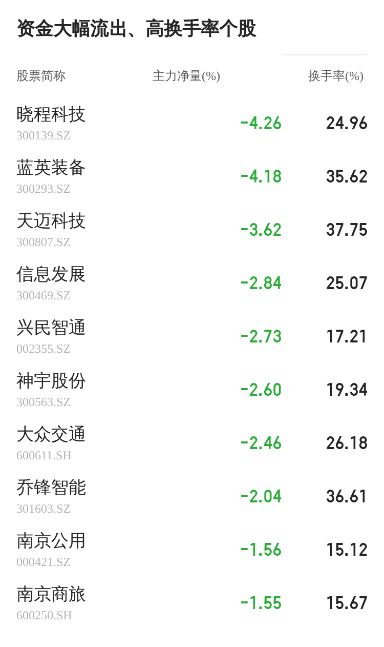 该股今日主力净量为负,且值较大,表明主力大幅流出,主动卖出明显多于主动买入。与此同时,今日换手率较高,主力抛售的嫌疑较大。投顾建议:投资者短期宜合理控制仓位,谨慎为佳。