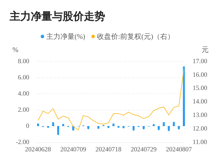 民生健康08月08日主力(dde大单净额)净流入1.08亿元,涨跌幅为20.02%,主力净量(dde大单净额/流通股)为7.40%,两市排名1/5107。