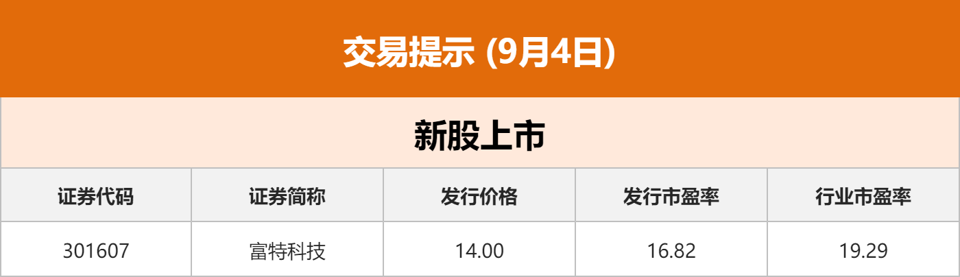 龙虎榜:9月3日,日内上榜龙虎榜个股中,资金净流入最多的是天源迪科,金额为1.3亿元。从机构角度看,日内机构席位净买入14只个券(1只可转债),其中净买入N豫光转最多,为3573万元。深圳华强紧随其后,被净买入3188万元。相反,机构席位净卖出科森科技最多,为1.02亿元。