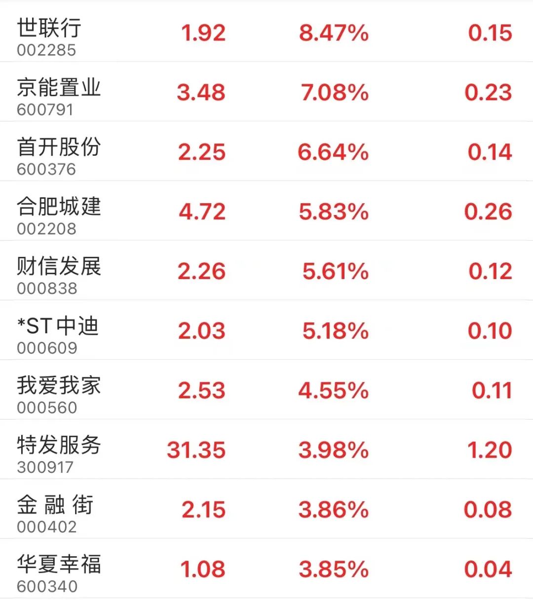 房地产板块早盘走势活跃,京能置业、首开股份盘中一度触及涨停。截至午间收盘,世联行涨超8%,京能置业、首开股份、合肥城建、财信发展等涨超5%。