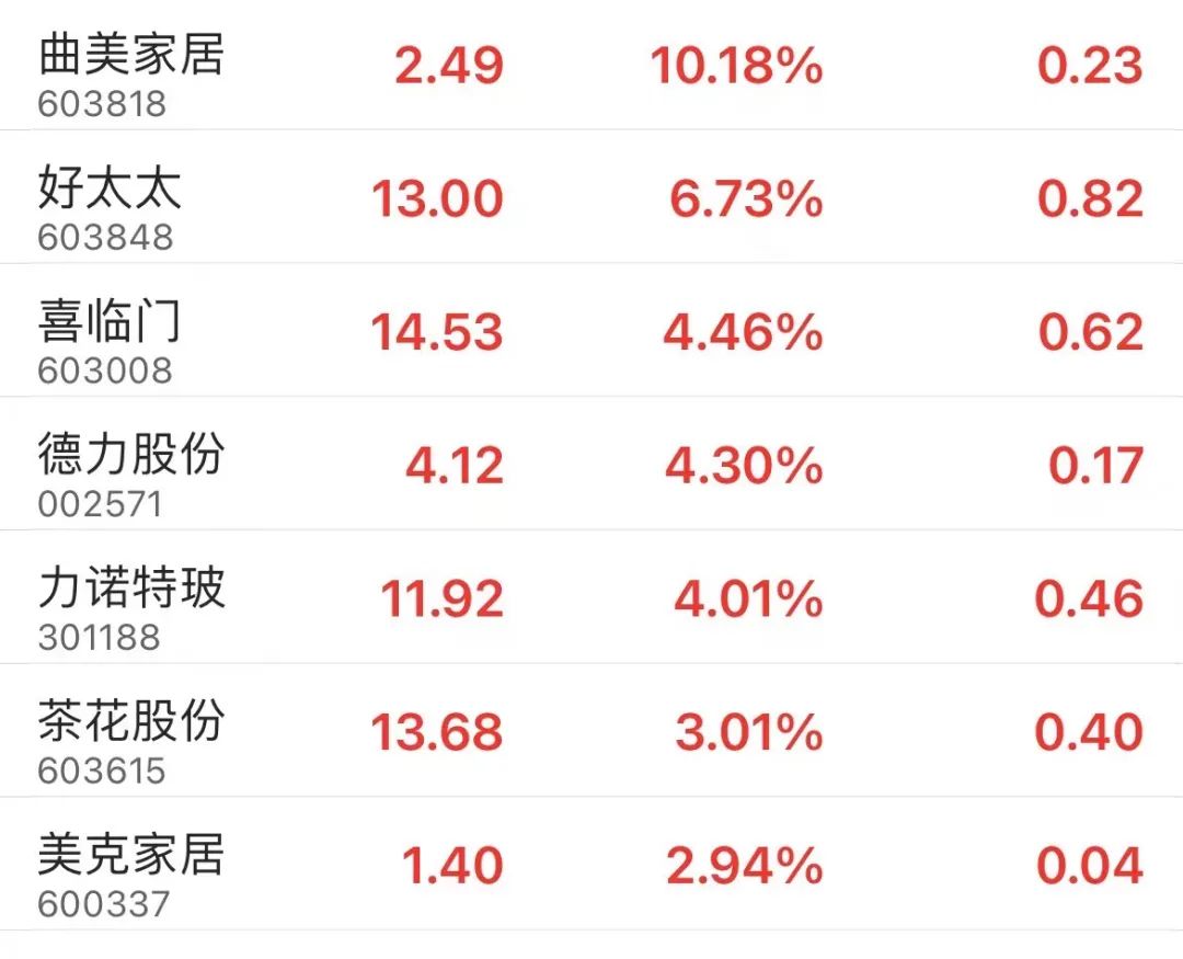 家居装饰板块也同步走强。截至午间收盘,曲美家居涨停,好太太、喜临门、德力股份等涨幅居前。