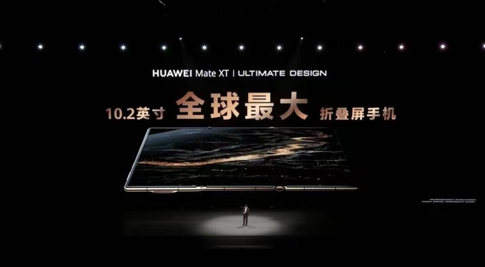 发布会上,华为MateXT发布,华为常务董事、终端BG董事长余承东称其是全球首款三折叠手机。他表示,“手机展开之后屏幕10.2英寸,是最大的折叠屏手机,相当于把平板装在口袋里;展开后厚度3.6毫米,是最薄的折叠屏手机。”