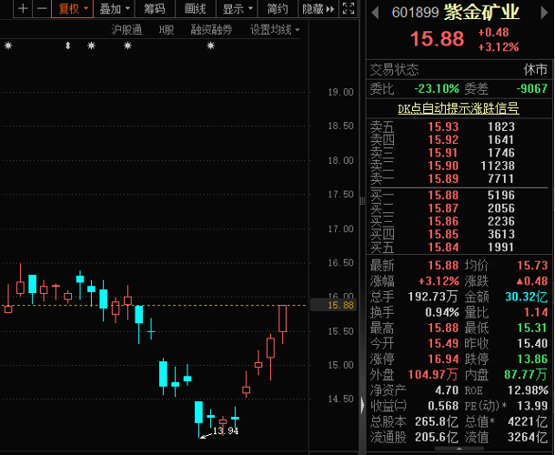 截至9月20日,紫金矿业A股最新市值为4221亿元。半年报显示,公司二季度同时获得华泰柏瑞沪深300ETF、阿布达比投资局的增持,期末持仓分别为市值34.19亿元、25.95亿元。