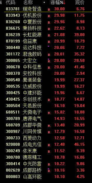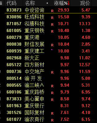今天的盘面,最大的亮点就是四川、重庆本地股集体涨停!成都路桥、重庆建工、四川金顶、西部建设、四川双马等30余股涨停。