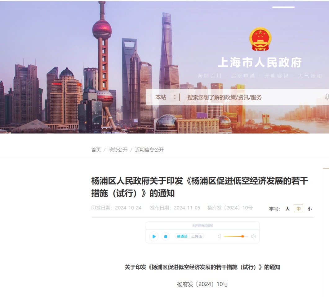 11月5日,上海杨浦区政府发布《杨浦区促进低空经济发展的若干措施(试行)》,提出到2027年,低空经济产业创新策源力、集群显示度、示范场景吸引力大幅提升。持续放大“杨数浦”品牌效应,依托杨浦数字经济集聚、科教资源丰沛、应用场景多元的特色优势,打造低空经济产业创新高地和商业应用高地。结合中心城区实际,因地制宜有序开展商区、校区、园区、社区等低空无人机物流配送商业应用,培育低空经济产业链“链主”企业,集聚一批上下游企业。将支持开设低空航线服务;支持多场景应用;支持关键核心技术和共性技术攻关;鼓励共建创新平台提供专业服务;支持低空基础设施建设;引培低空经济企业等。