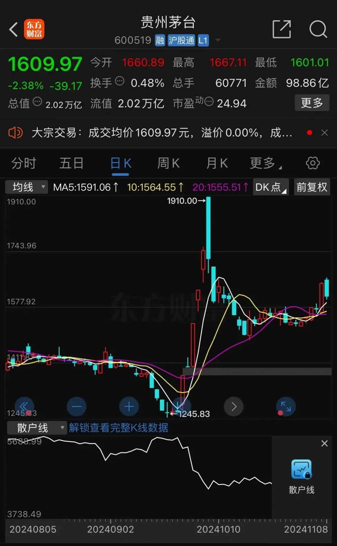 此前,今年6月,飞天茅台的价格也出现过一波快速下降,飞天茅台散装价格曾跌至2000元/瓶附近。随后,贵州茅台采取诸多措施,提振市场价格。国金证券认为,飞天茅台批价波动系常规需求由旺转淡时的价格惯性,叠加渠道链参与者目前情绪较为谨慎、投资以及收藏需求持续挤出。