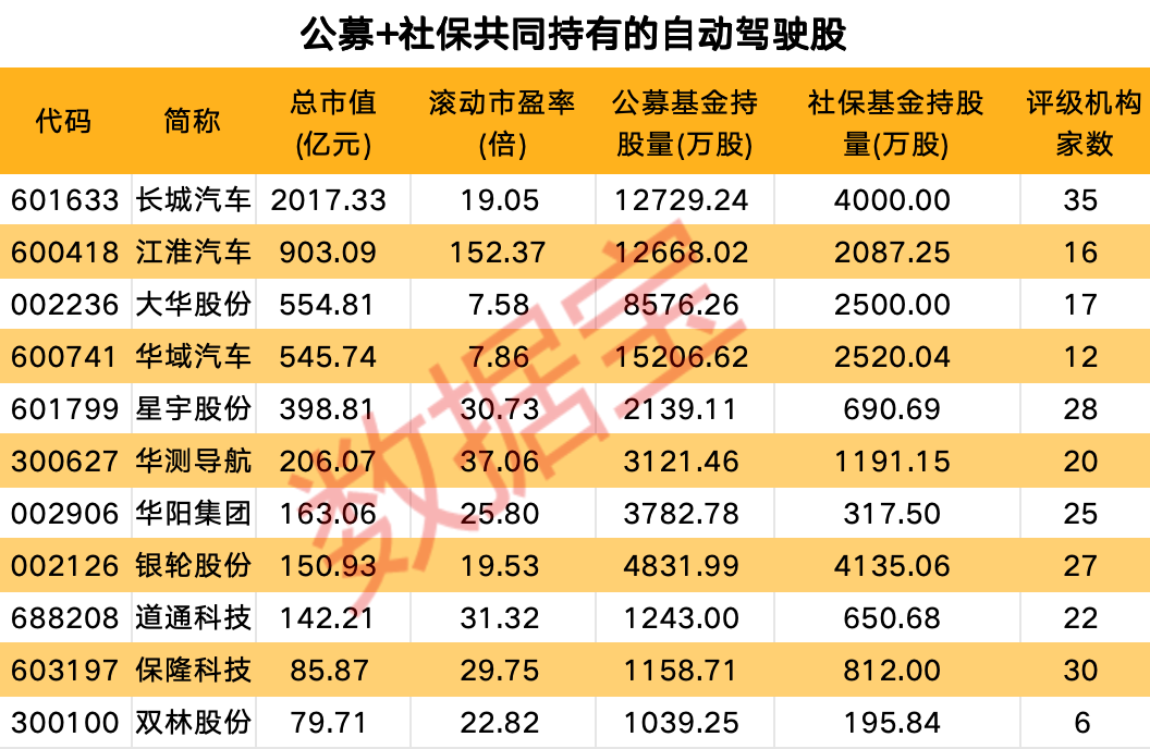 原标题:自动驾驶迎重大政策利好,11只概念股获公募+社保共同持有