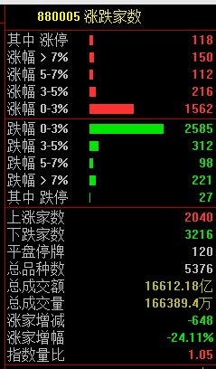 两市共2040只个股上涨,118只个股涨停,3216只个股下跌。