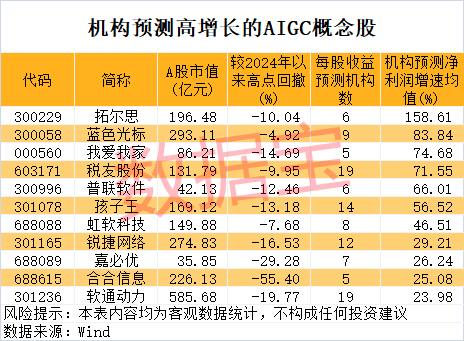 未来增长潜力方面,哪些公司值得期待?券商研报或能提供一定参考。据数据宝统计,根据5家以上机构一致预测,2024年—2026年净利润增速均有望超20%的AIGC概念股有11只。