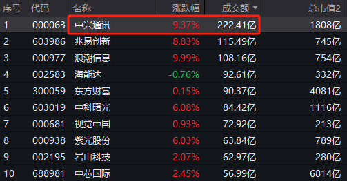 数据显示,截至今天收盘,中兴通讯(000063)成交额达到222.41亿元,创上市以来新纪录。