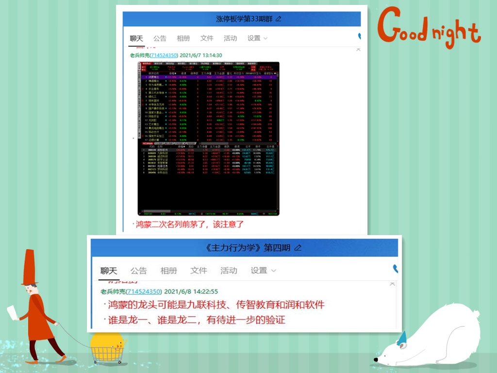 周一的盘中,我曾经提醒大家鸿蒙概念已经两次进入同花顺概念指数涨幅榜首位,应该要注意了。当晚我又在视频上对这个概念进行解读,并选出润和软件和拓维信息进行分析,同时指出还有几只鸿蒙概念的次新股也不错。第二天午后的盘中,我又根据盘面的实际走势,把鸿蒙概念的龙头股圈定为九联科技、传智教育和润和软件,并在当天的帖子里进行了分享。