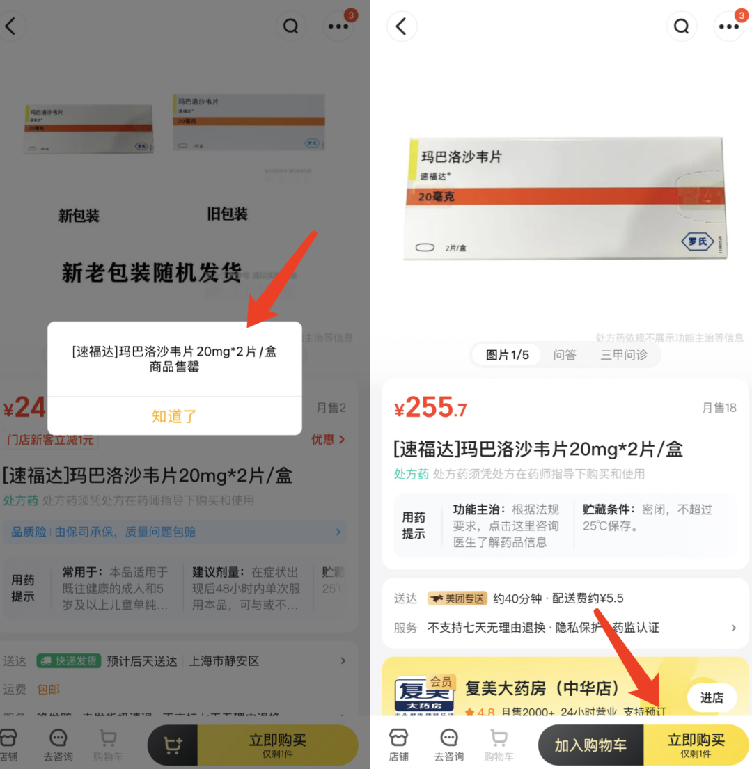 “速福达(玛巴洛沙韦)今天已经确定卖光了,这几天都没有,你要的话得到礼拜三才能到货,到时候再来买吧。”多家连锁药房的工作人员对记者说道。
