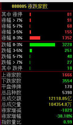 市场共1666只个股上涨,81只个股涨停,3554只个股下跌。