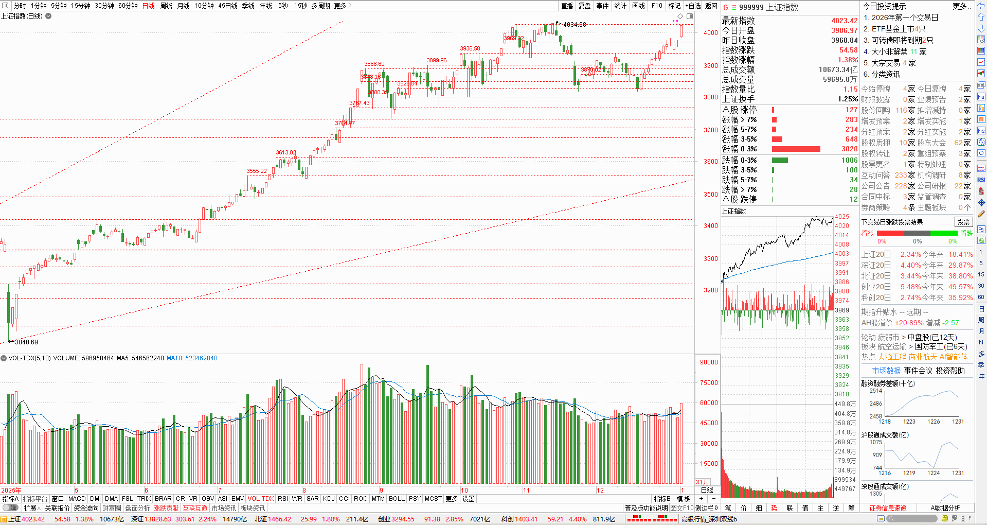 记得早在2025年10月27日的时候,老兵帅克就在收评里说过:大盘只要“有效突破3888、特别是3936之后,指数会向4184发起冲锋。”而在2026年1月6日的热点分析里,老兵帅克再次指出:大盘“最近的左侧压力4025已被有效突破,只差一个回踩确认而已。如果在回踩时能有效守住,大概率会去攻击4184”。