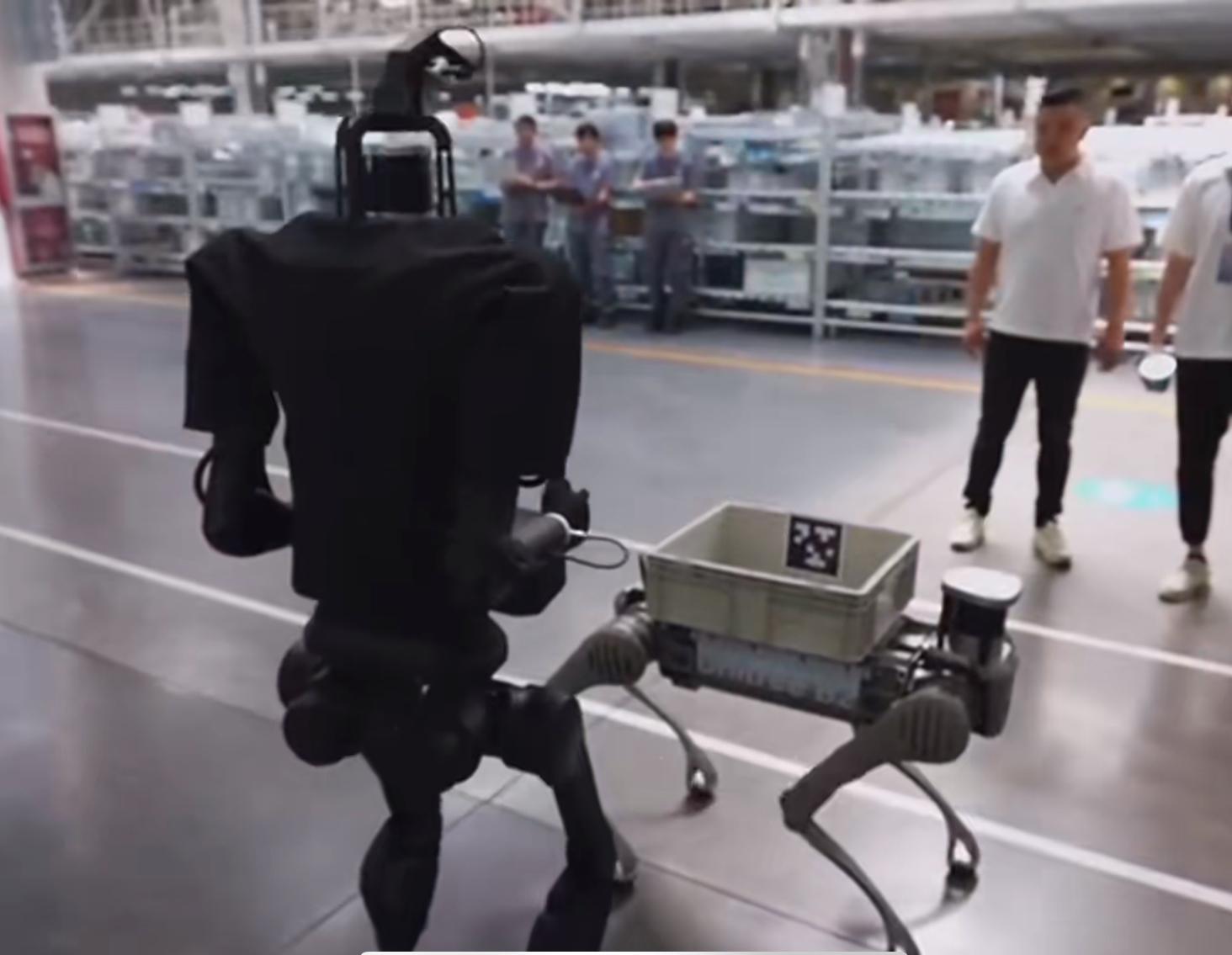 王春告诉《科创板日报》记者,宇树科技首款通用人形机器人Unitree H1和四足的机器狗已经进入了蔚来汽车工厂的总装车间,二者结合起来,给汽车产线做自动拣料配送工作,目前两种设备正在调试和训练阶段。