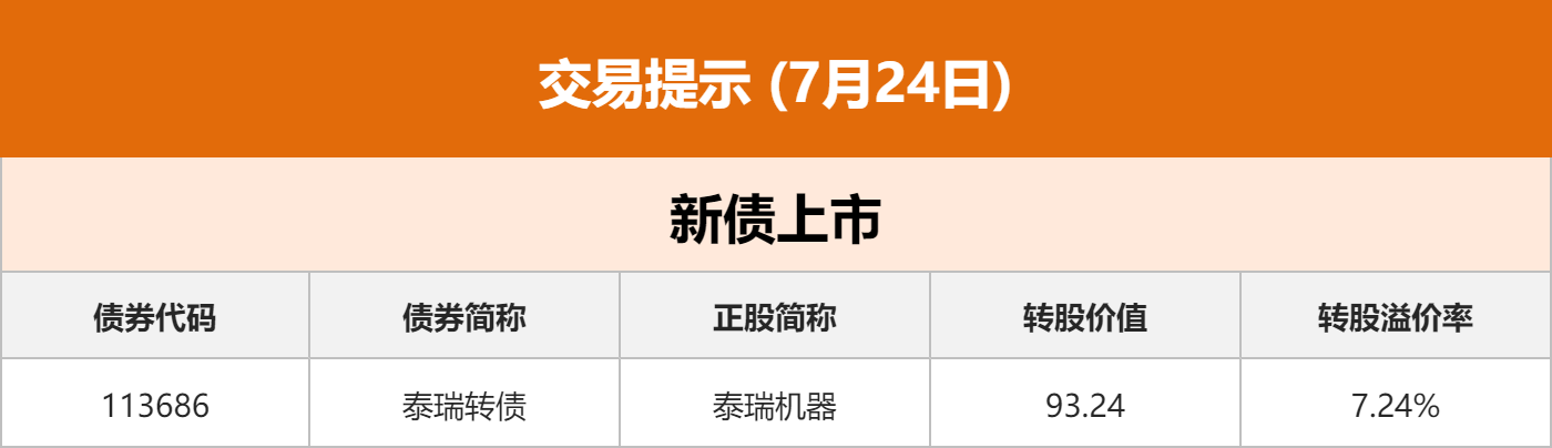 利率债:7月23日,银行间主要利率债收益率多数下行,截至北京时间17:09,超长期活跃券230023收益率下行0.40bp报2.4470%,10年期国债活跃券240004收益率下行1.85bp报2.2225%,10年期国开活跃券240205收益率下行1.80bp报2.2910%。5年期国债活跃券240014收益率下行2.25bp报1.8900%。国债期货全线上涨,30年期主力合约涨0.17 %报109.570元,10年期主力合约涨0.14%报105.870元。5年期主力合约涨0.10 %,2年期主力合约涨0.03%。