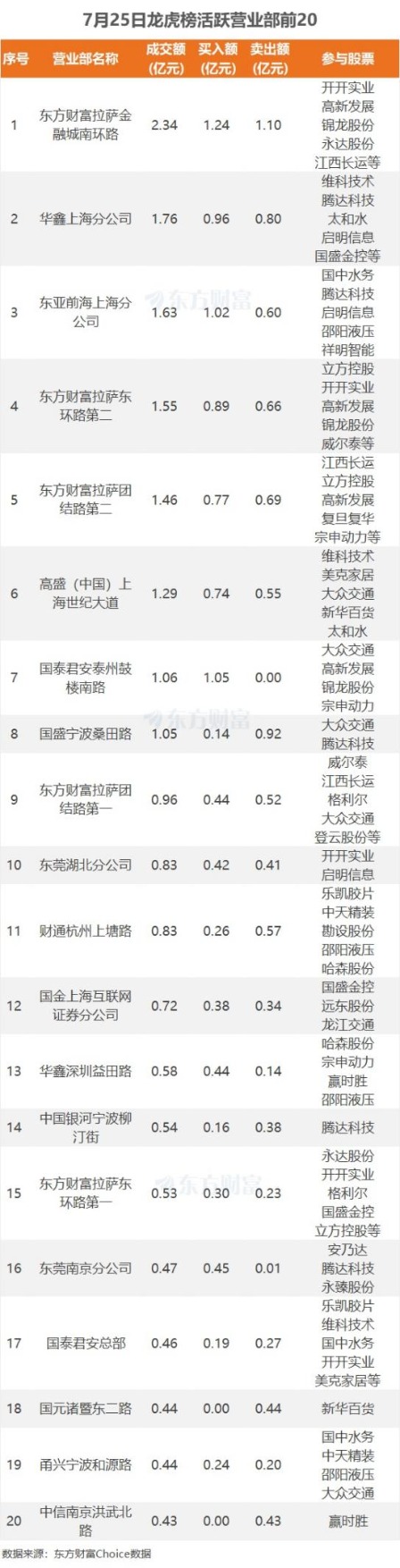 从活跃营业部角度看,华鑫上海分公司成交1.76亿元,参与了维科技术、腾达科技、太和水、启明信息、国盛金控等股票。国盛宁波桑田路成交1.05亿元,参与了大众交通和腾达科技。财通杭州上塘路成交0.83亿元,参与了乐凯胶片、中天精装、勘设股份、邵阳液压和哈森股份。