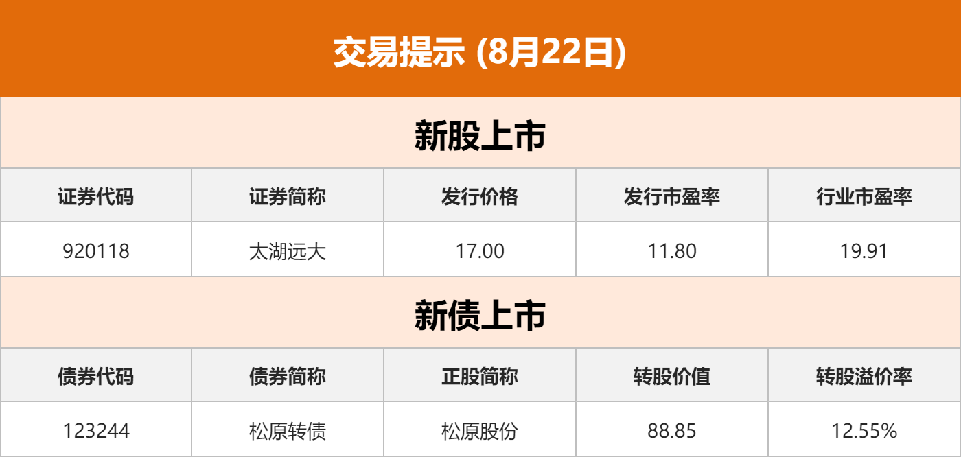 美债:周三(8月21日)纽约尾盘,美国10年期基准国债收益率跌1.89个基点,报3.7878%,北京时间22:00(美国劳工部原定当时发布非农就业人口初步修订数据、但后来有所延迟)拉升并刷新日高至3.8294%,02:00发布美联储7月底FOMC货币政策会议的纪要后,刷新日低至3.7595%。两年期美债收益率跌5.94个基点,报3.9242%,22:00刷新日高至4.0041%,随后恢复震荡下行走势,02:02刷新日低至3.8886%。20年期美债收益率跌1.24个基点,30年期美债收益率涨0.26个基点。三年期美债收益率跌5.59个基点,五年期美债收益率跌4.16个基点,七年期美债收益率跌3.31个基点。三个月期国库券/10年期美债收益率利差涨0.783个基点,报-136.477个基点。02/10年期美债收益率利差涨4.739个基点,报-13.878个基点,欧美时段震荡上行。美国10年期通胀保值国债(TIPS)收益率跌2.14个基点,报1.7104%。