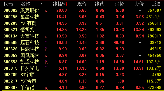 折叠屏概念今日再度走强,截至收盘,奥克股份“20cm”涨停,星星科技涨超16%,爱司凯、大富科技涨超13%,冠石科技、科森科技、国风新材等亦涨停,凯盛科技涨近9%。