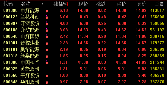 煤炭板块今日逆市拉升,截至收盘,中煤能源、兰花科创涨超6%,开滦股份涨超4%,兖矿能源涨约3%。