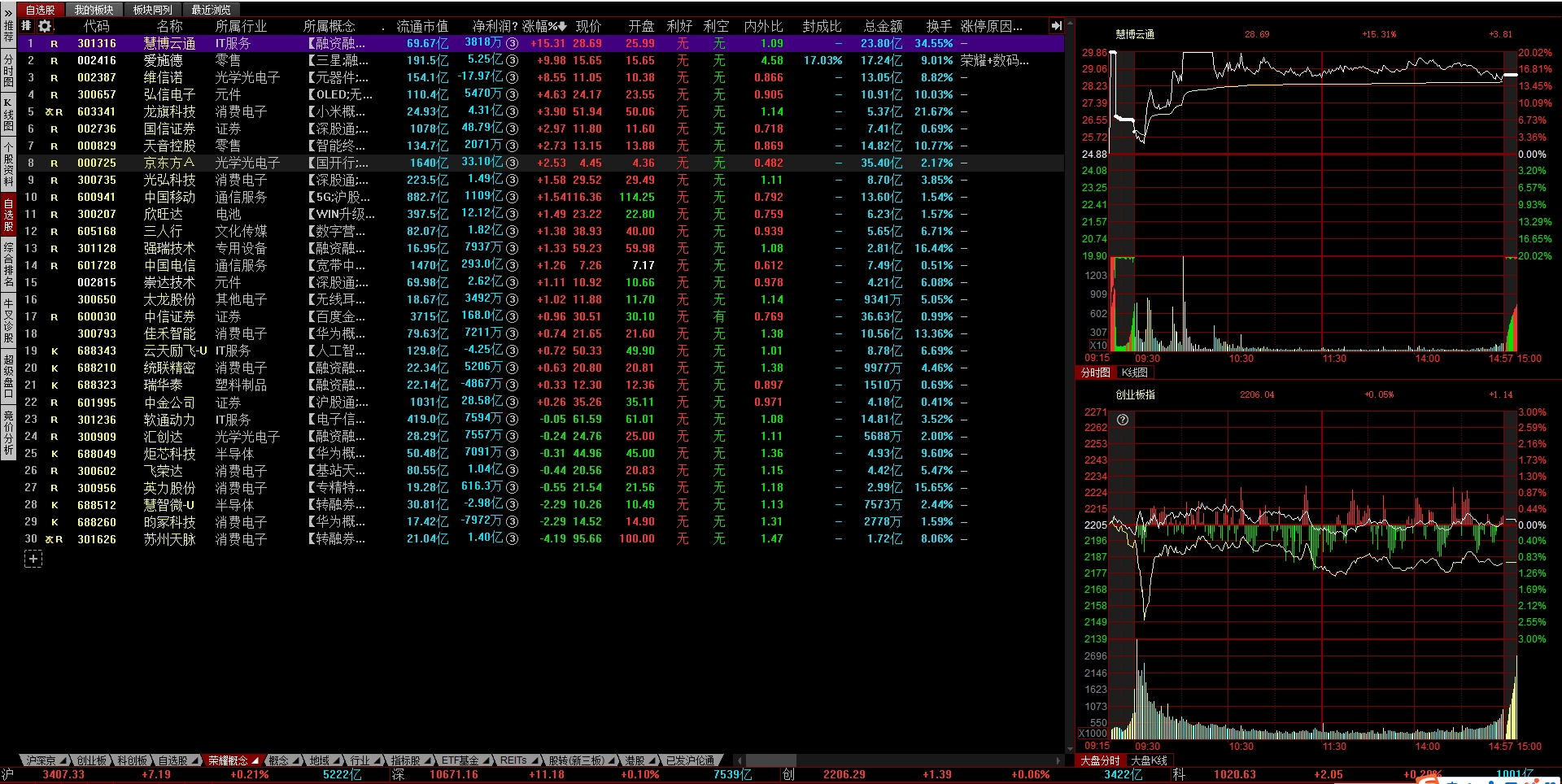 为此,老兵帅克根据财联社和证券时报网的相关披露,于早上开盘前率先建立了一个“荣耀概念”板块,一共收进了30只个股,不料到收盘的时候,竟有22只上涨,占比高达近8成。其中,爱施德和汇博运通涨势最猛,一只一字板开盘,一只开盘半小时后封板,虽然盘中均被砸开,但到收盘时止,爱施德仍牢牢封死涨停,汇博运通虽然无力回封,但也大涨15.31个点。