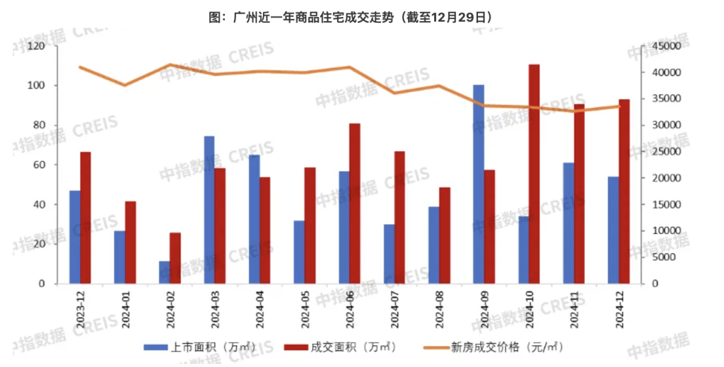 中指研究院华南分院研究主管陈雪强指出,2024年,广州相继出台多项房地产利好政策,尤其是9月底以来,在中央定调要促进房地产市场止跌回稳的背景下,广州房地产政策能出尽出,取消长达14年的限购政策。在一系列利好政策的带动下,广州房地产市场去年四季度成交明显回升。