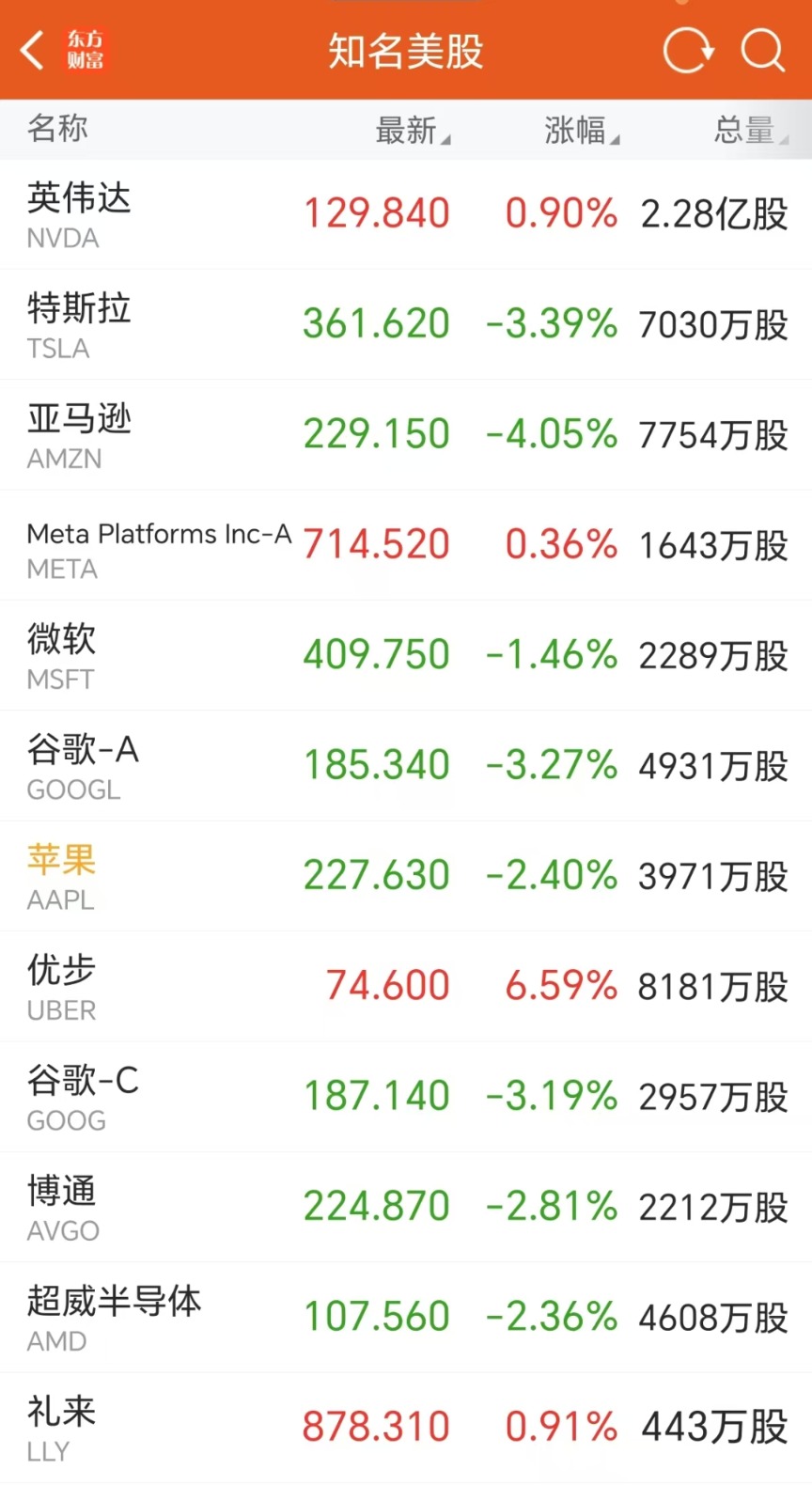 大型科技股多数下跌,亚马逊跌超4%,创去年12月18日以来最大单日跌幅;特斯拉、谷歌跌超3%,苹果跌超2%,微软、英特尔跌超1%,奈飞小幅下跌;英伟达、Meta小幅上涨。其中,特斯拉本周累跌近11%,创去年10月以来最大跌幅。