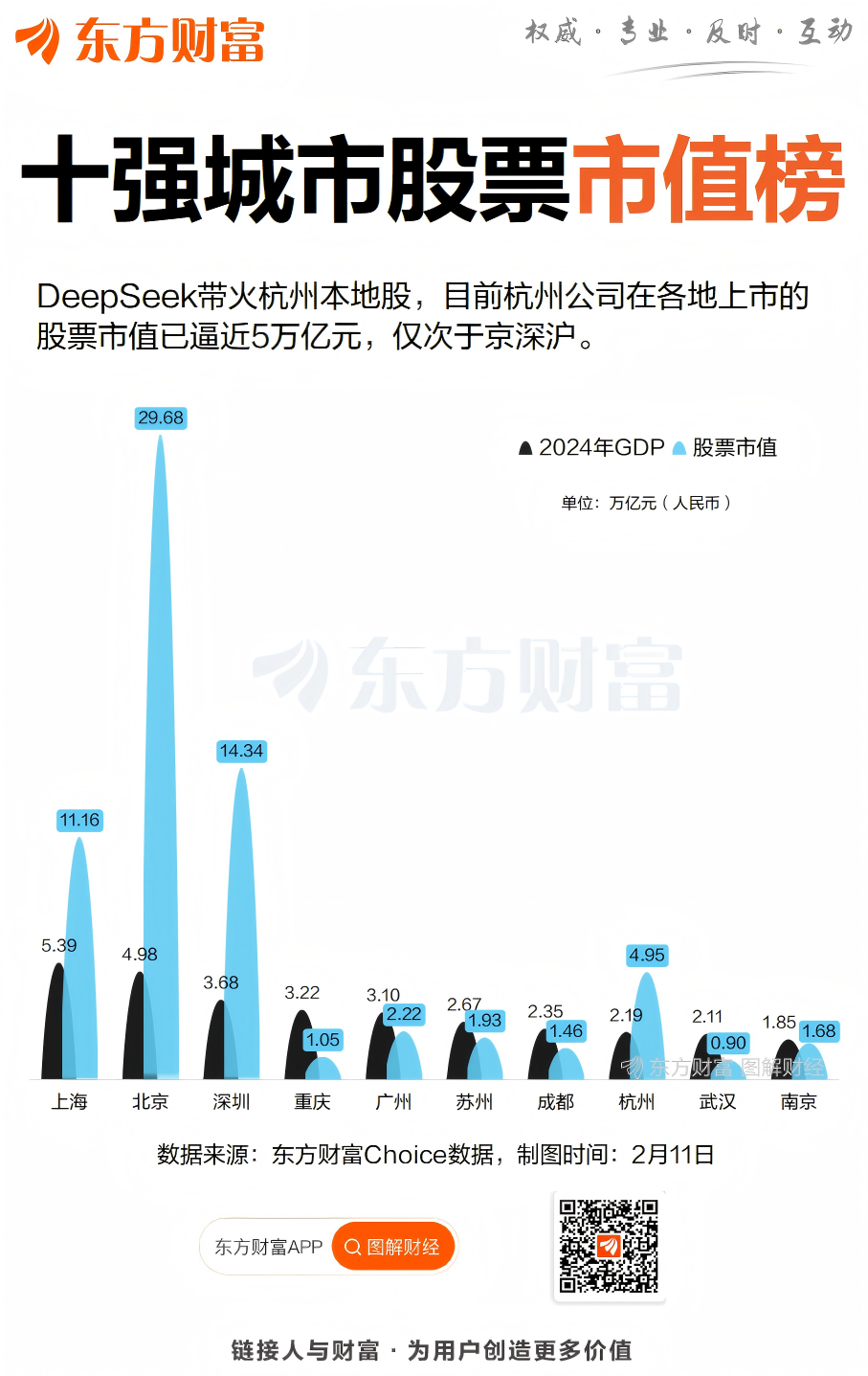 综合来看,杭州公司在各地上市的股票市值已达4.95万亿元(人民币),离5万亿元仅一步之遥,在2024年GDP十强的城市中仅次于北京、深圳、上海,超成都、武汉等经济相近城市的一倍以上。