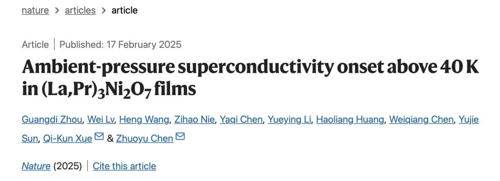 继铜基、铁基材料之后,镍基材料成为了第三类在常压下突破40K“麦克米兰极限”的高温超导材料体系。这一重磅成果由南方科技大学校长薛其坤院士领衔的南方科技大学、粤港澳大湾区量子科学中心与清华大学联合研究团队最新发表在顶级学术期刊《自然》(Nature)上。