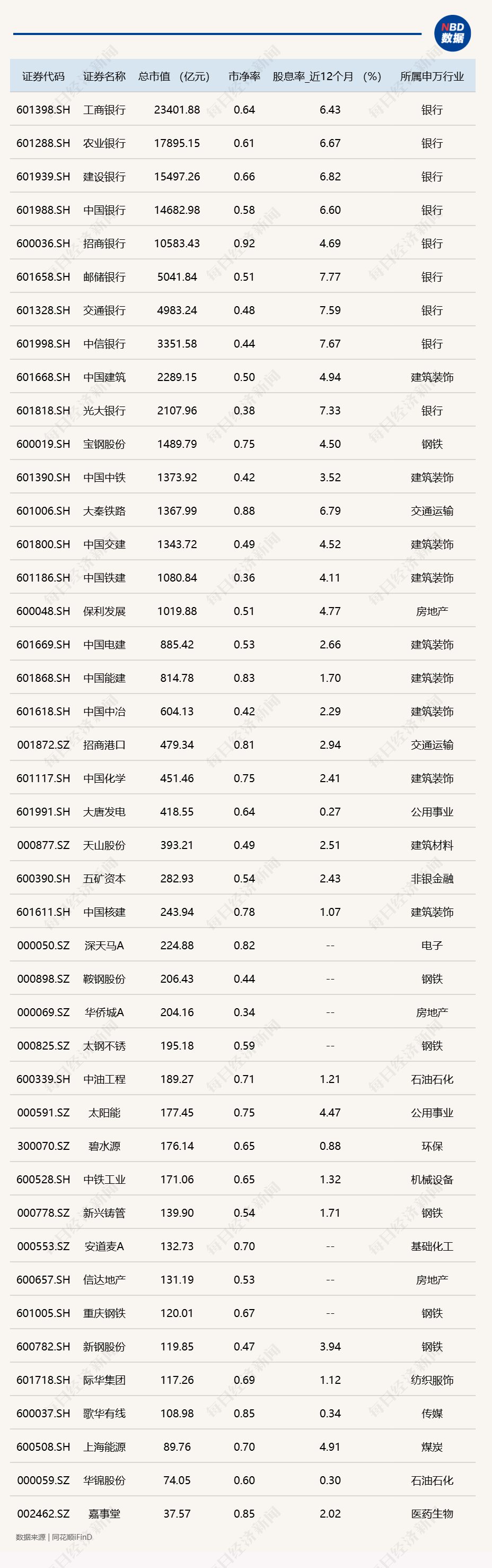 长期破净央国企上市公司约43家,银行、建筑行业公司数量多