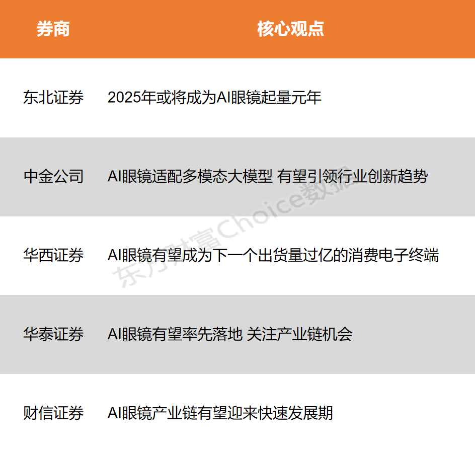 日前,中国信通院泰尔终端实验室联合S–Dream Lab,从基本配置、音频、图像、防抖、交互、续航、安全隐私7个模块、超60个测试项,对RayBan-Meta Wayfarer智能眼镜的主要使用场景和功能进行全面、客观的功能、性能、可用性和可靠性测试,旨在为AI眼镜行业提供可参考评价指标。东北证券表示,AI眼镜有望复刻TWS耳机高速增长实现快速起量,2025年或将成为AI眼镜起量元年;中金公司认为,AI眼镜适配多模态大模型,有望引领行业创新趋势;华西证券指出,AI眼镜有望成为下一个出货量过亿的消费电子终端。