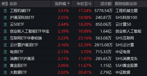 受此影响,在场内主题型ETF中,平时稍显冷门的两只工程机械ETF显著领涨。