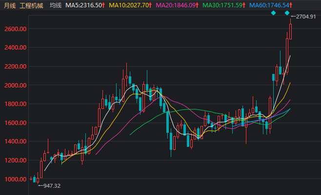 但如图所示,截至收盘,工程机械板块涨幅始终领先,该指数盘中甚至创下历史新高,这是为什么呢?