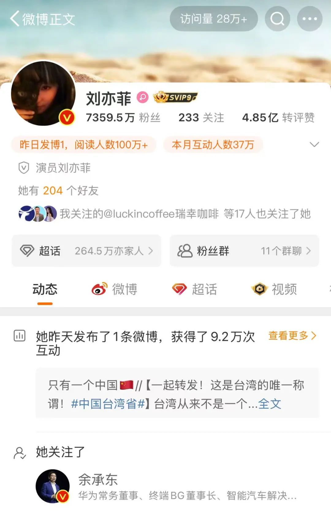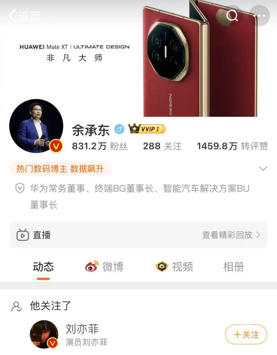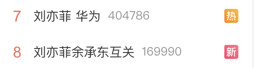 3月8日下午,“刘亦菲华为”“刘亦菲余承东互关”等词条冲上微博热搜。