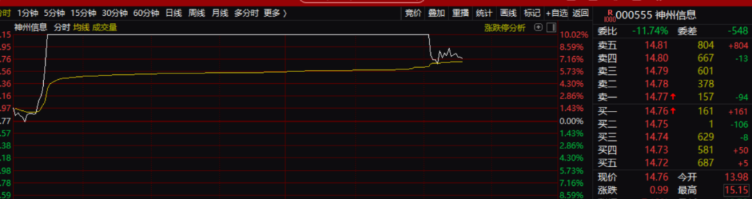 今天,神州信息的利好的确重磅,以至于该股早上开盘之后,直线封板。不过,尾市开板也是当前市场情绪走弱的一个信号。